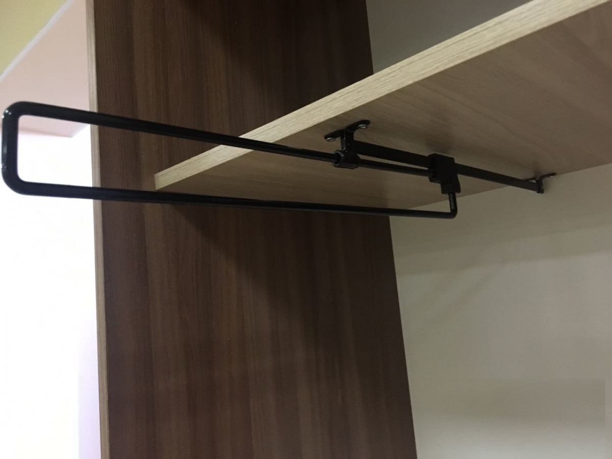Модуль оснащен антресолью, полками и хромированной штангой.
