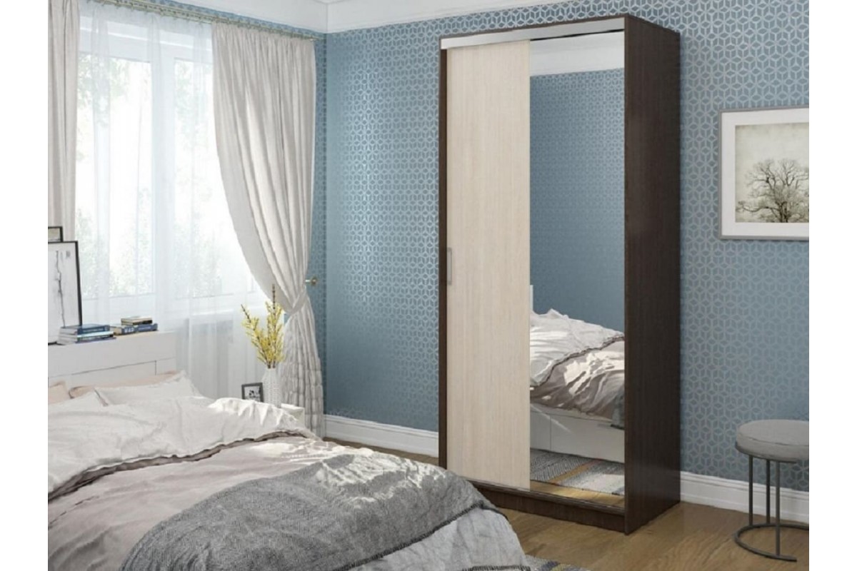 Шкаф-купе «Альянс» 1,0 м с двумя ящиками (венге - дуб беленый)