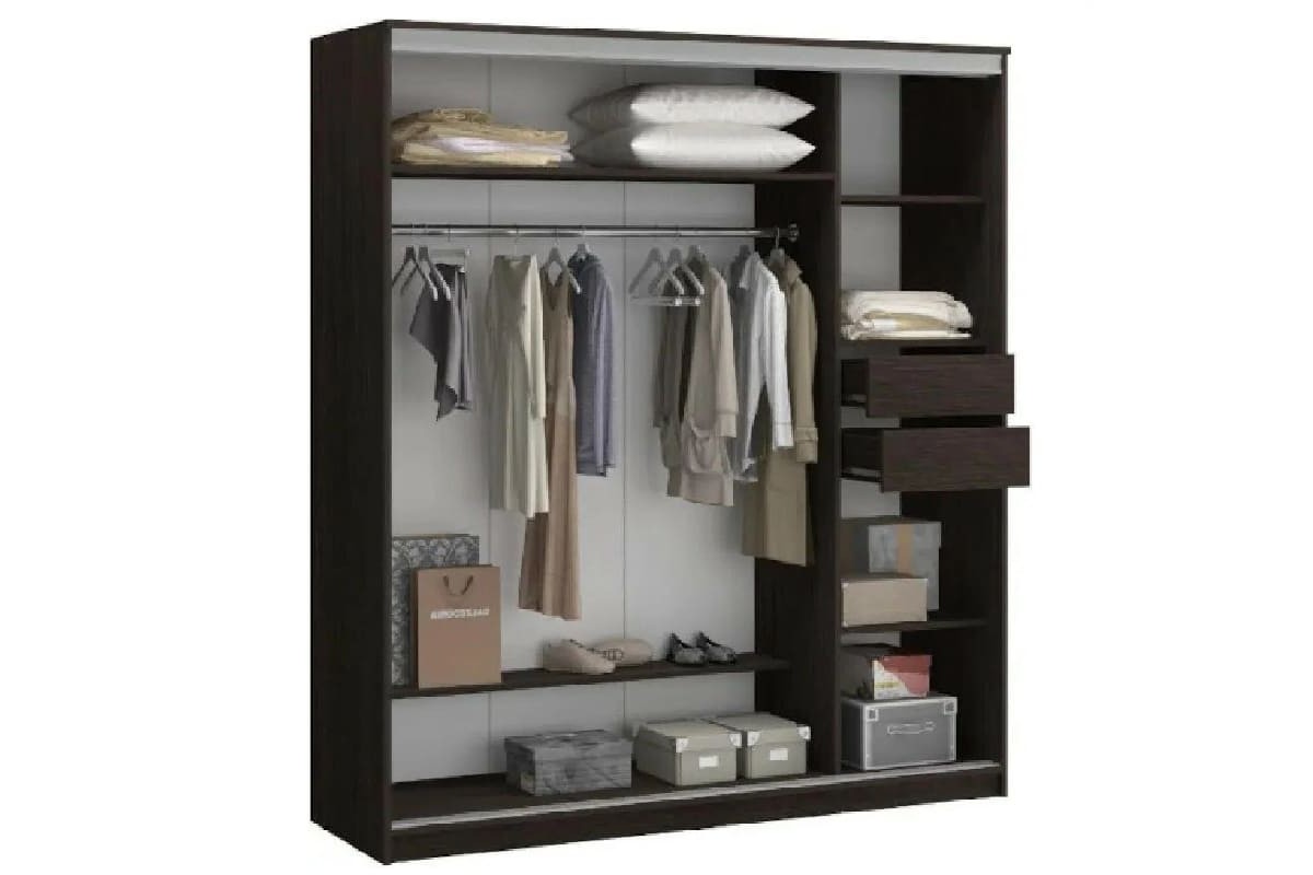 Корпусный фабричный шкаф-купе без зеркал. Одно отделение внутри. Ширина 112 см.