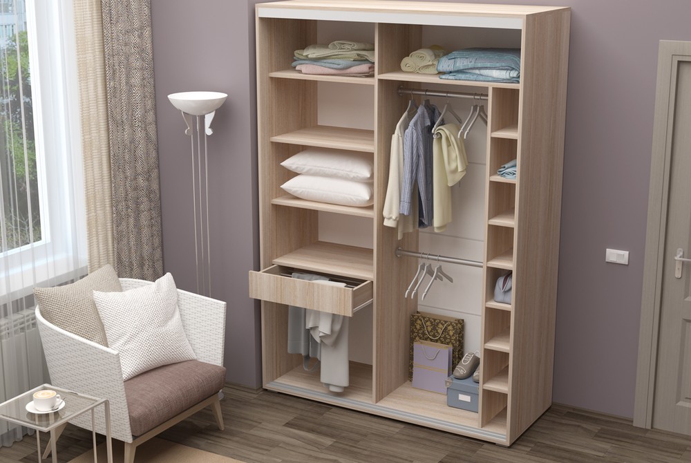 Вместительный и функциональный шкаф с нишами и боковыми полками.