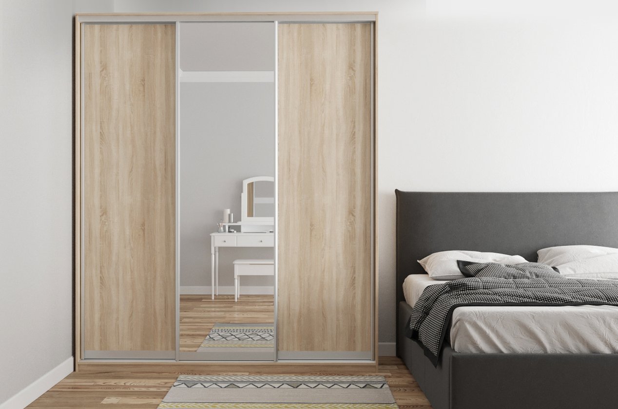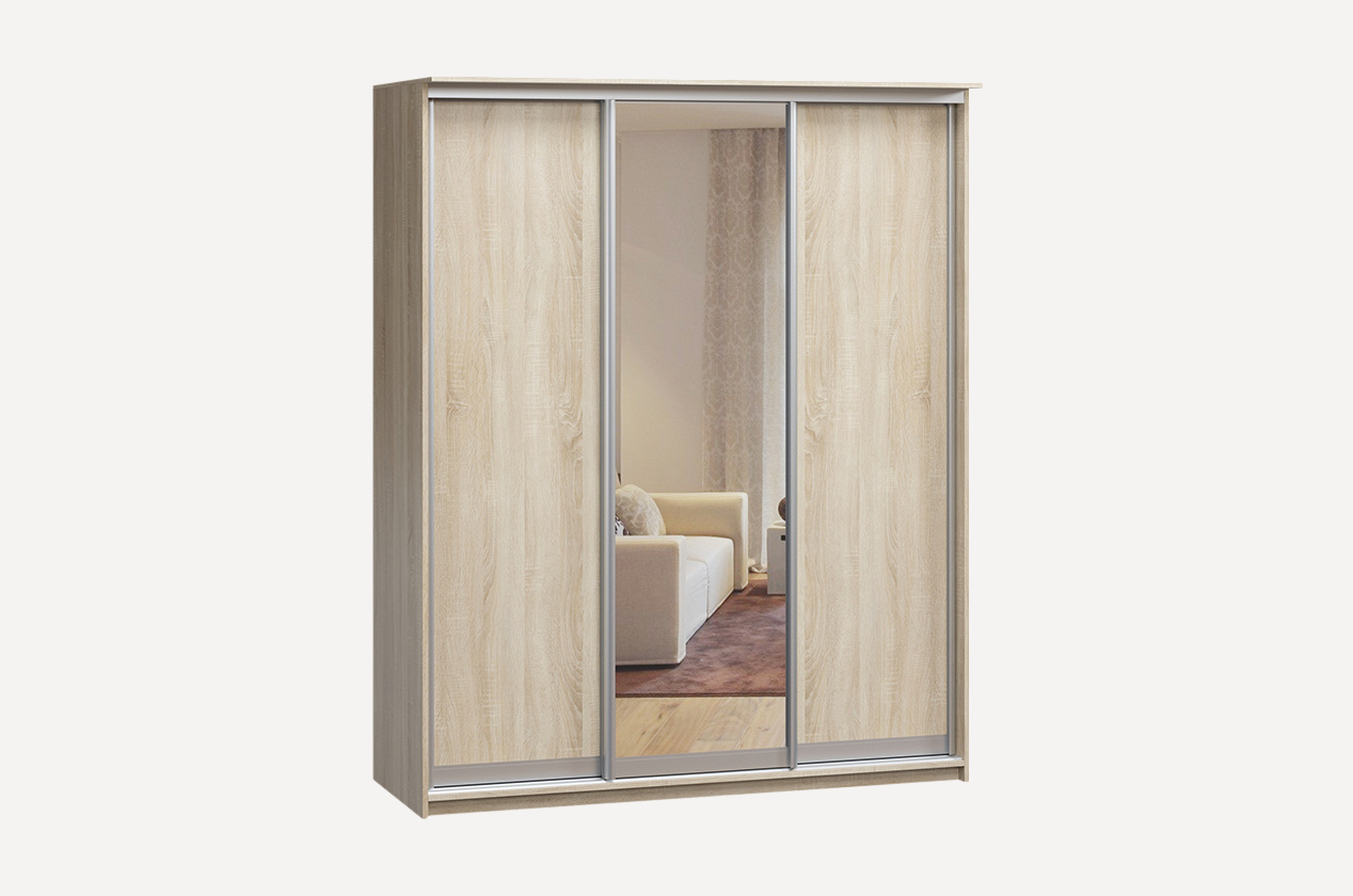 Шкаф-купе «Байкал-3-160-200» Дуб Сонома 1 зеркало 3 двери