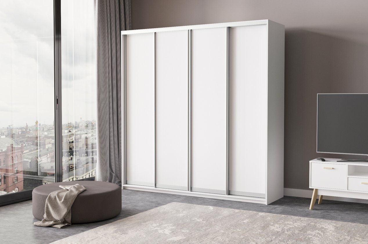 Обладая современным дизайном и большими габаритами, шкаф создан для того, чтобы объединить потребности всей семьи в удобном хранении вещей. Это не только стильный элемент интерьера. С таким гардеробом очень комфортно взаимодействовать. Доступ к внутренней части получается легким благодаря современной системе направляющих. Наличие ленты-щетки предотвращает попадание пыли внутрь шкафа, а так же способствует бесшумному открыванию и закрыванию створок.