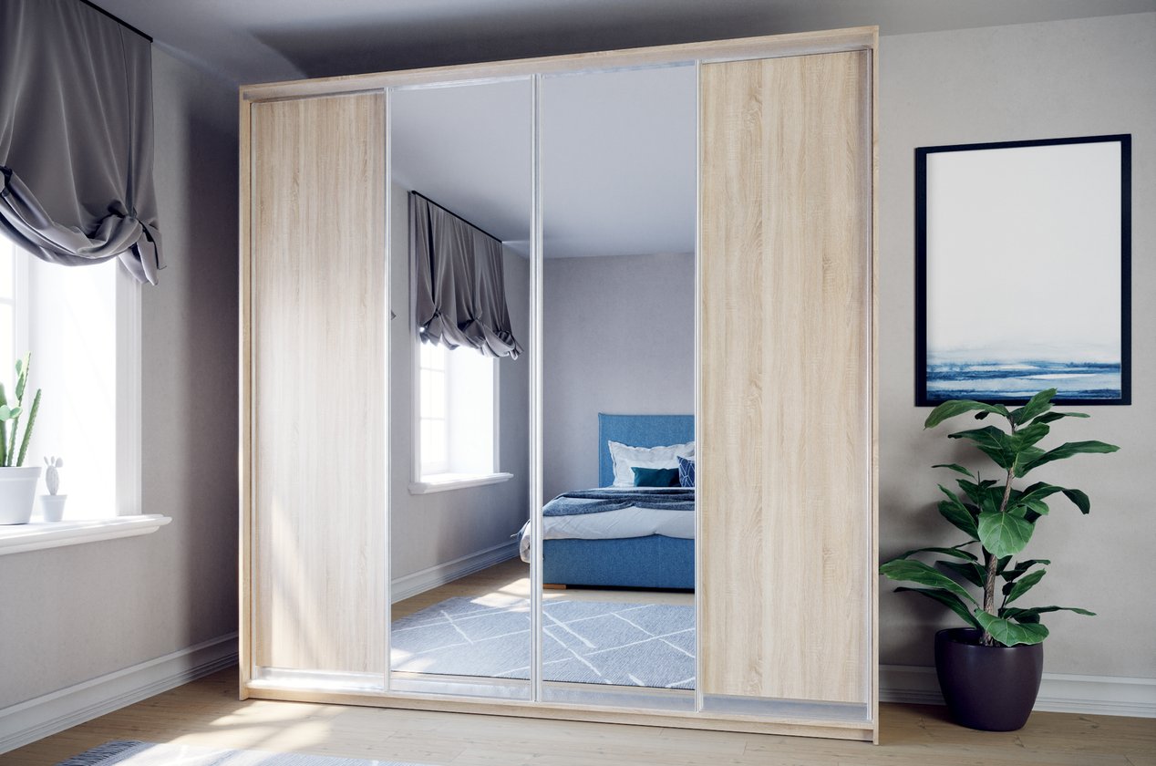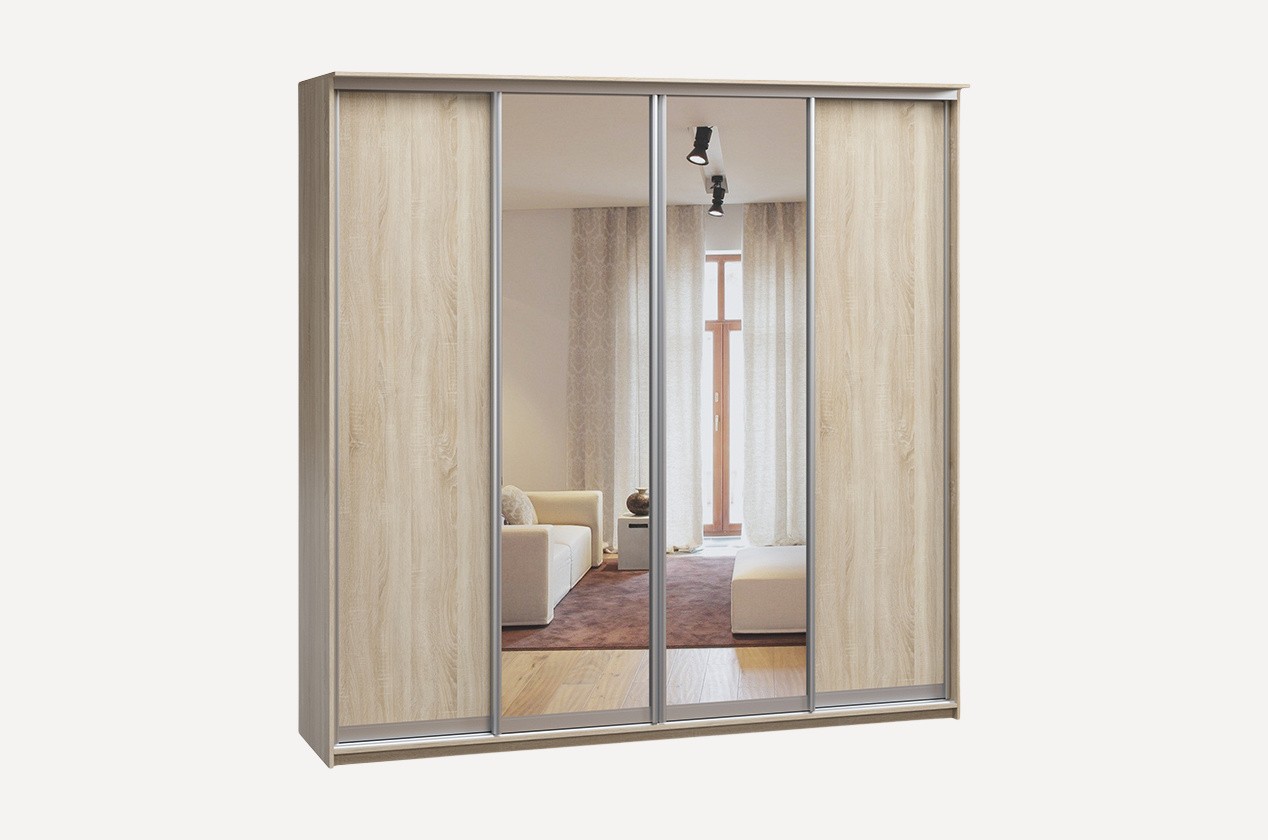 Шкаф-купе «Байкал-4-240-240» Дуб Сонома 2 зеркала 4 двери