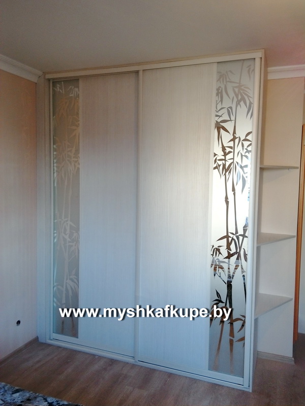 Шкаф-купе с пескоструем и открытыми полками