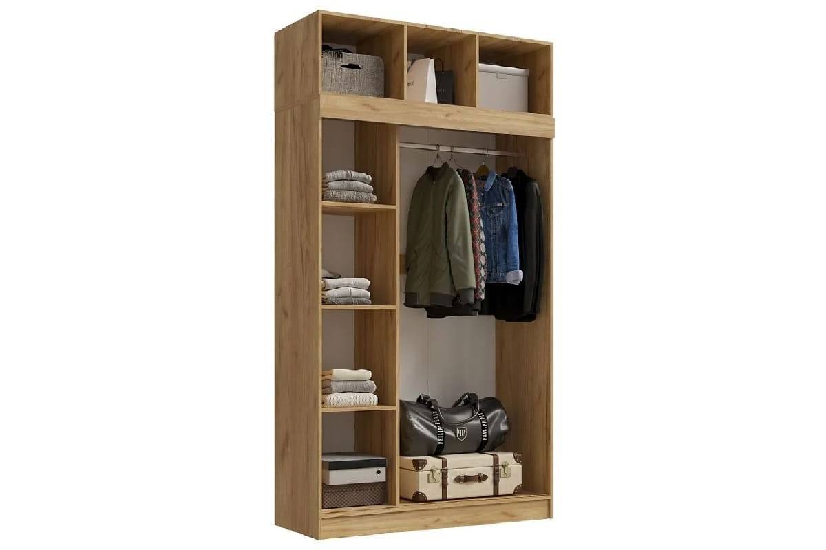 Шкаф-купе с полками слева, глухие фасады. Ширина 185 см.