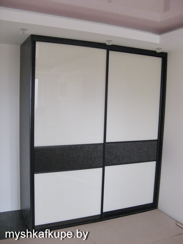 Шкаф-купе Белый лакобель с темной кожаной вставкой