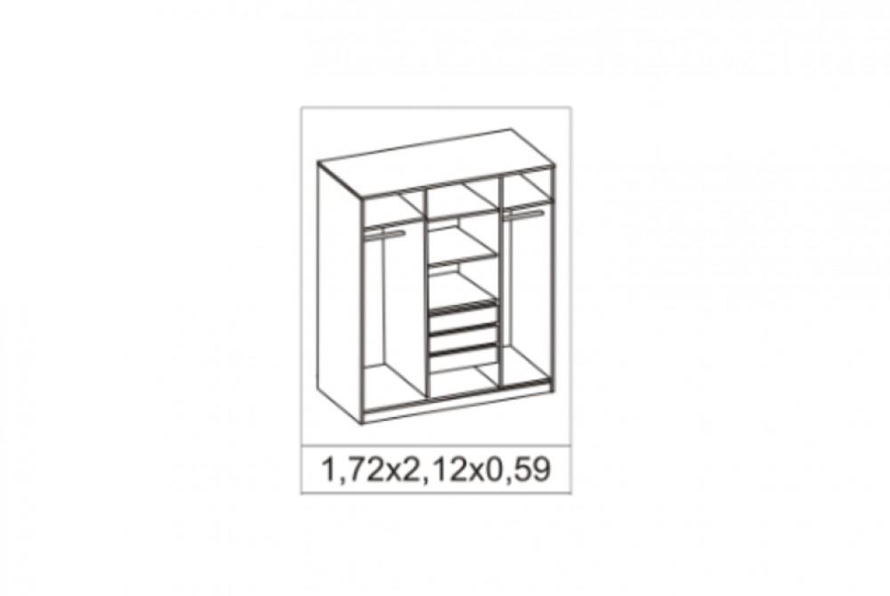 Шкаф "Берлин 12" - это практичное и стильное решение для хранения вашей одежды и других вещей. Он обеспечивает достаточно места для организации и удобства доступа к вещам. Внутреннее наполнение: в крайних секциях - антресольная полка и металлическая штанга для одежды; в центральной - отделение с тремя полками и тремя выдвижными ящиками.