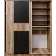 Шкаф-купе из ЛДСП в светло-коричневом оттенке «дуб каньон» с черными вставками на створках. Внутри предусмотрено большое отделение для одежды и полки. Модель выглядит современной и отлично впишется в большинство интерьеров.