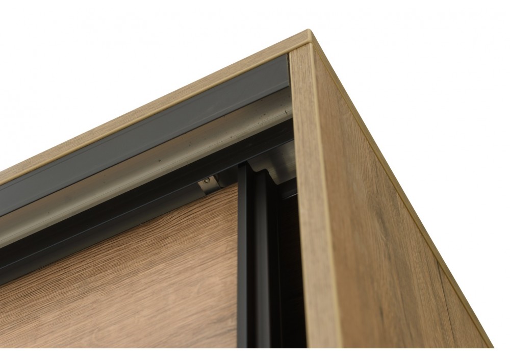 ---Нижне-опорная система раздвижения дверей (дверь опирается на полик шкафа), комплектуется стопорами для того, чтобы дверь не откатывалась, а фиксировалась при закрытии.
