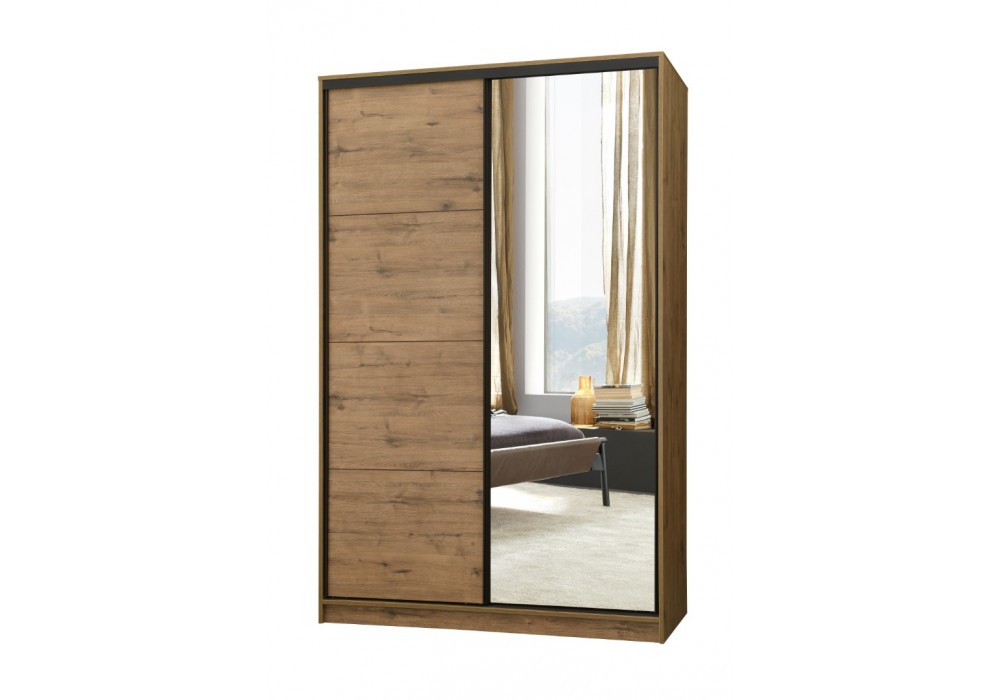 Шкаф зеркальный с дверями «купе›. Корпус в цвете дуба сономы.