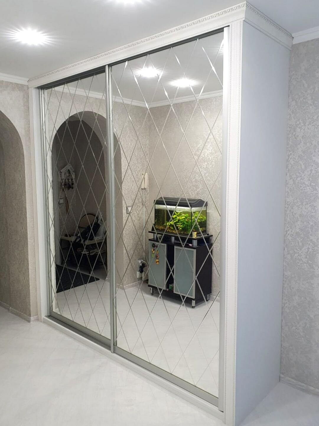 Шкаф-купе с узорами и зеркальными вставками