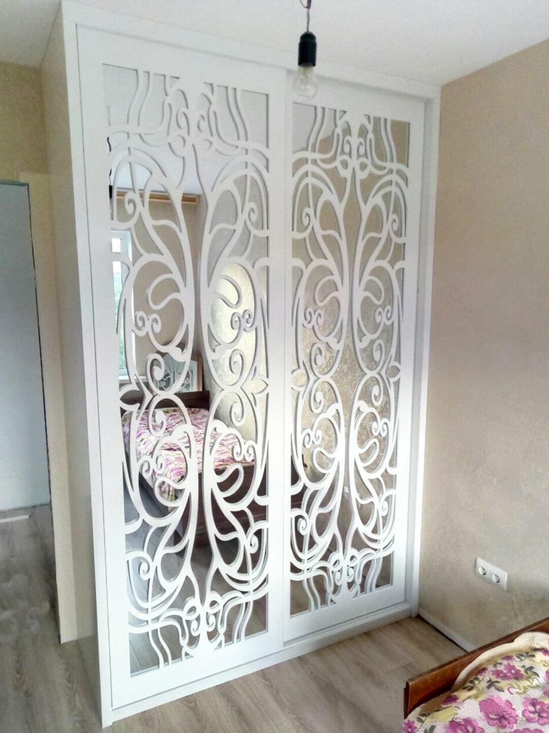 Современный и вместительный шкаф для спальной комнаты. Фасады с декором.