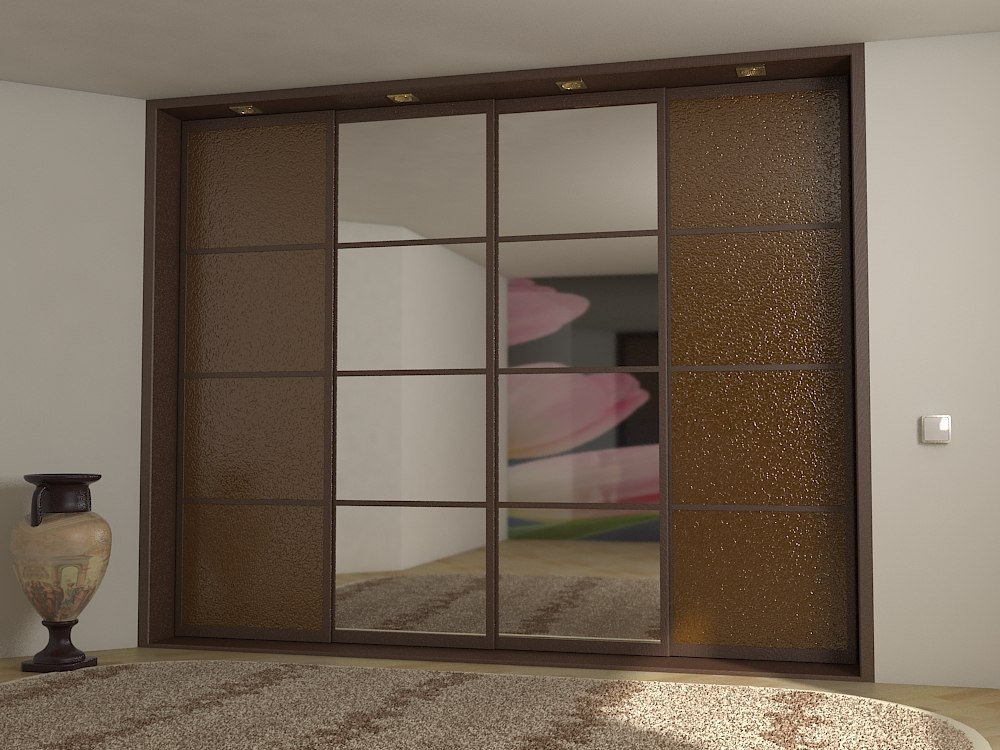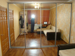Современная модель с зеркальными створками и алюминиевым профилем.