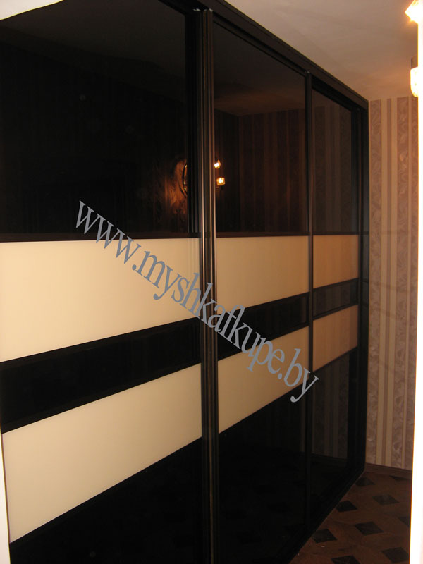 Система раздвижных дверей Senator. Профиль: коньяк. Фасад: лакобель двух цветов.