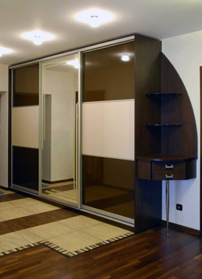 Шкаф-купе для прихожей «Идеал» имеет стильную и оригинальную конструкцию, которая станет настоящим украшением для любой гостиной комнаты в классическом и современном стиле. Часть корпуса закругленной формы комплектуется двумя небольшими выдвижными ручками скобовидной формы, которые крепятся на металлическую хромированную опору.