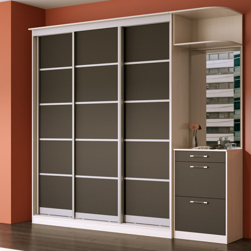 Современный 3x-дверный шкаф-купе. Стандартная глубина – 60 см позволяет размещать одежду на вешалках.