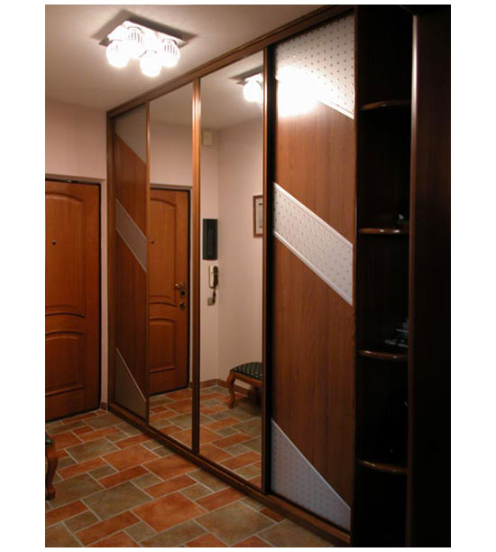 Шкаф-купе отлично подойдет для прихожей. Две из четырех дверей зеркальные, что позволит во весь рост оценить свой внешний вид перед выходом на улицу. Для предметов интерьера можно использовать боковые полки.