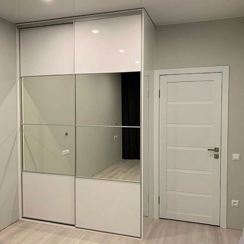 Шкаф-купе двухдверный белого цвета с зеркалами