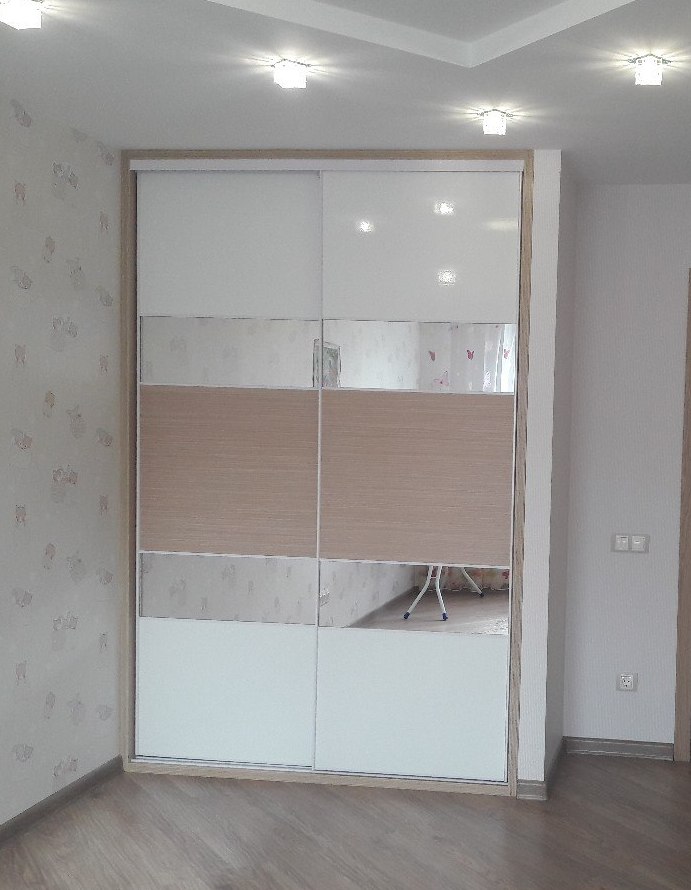 код 115728Встроенный светлый шкаф-купе. Подойдет для детской, спальни или прихожей.