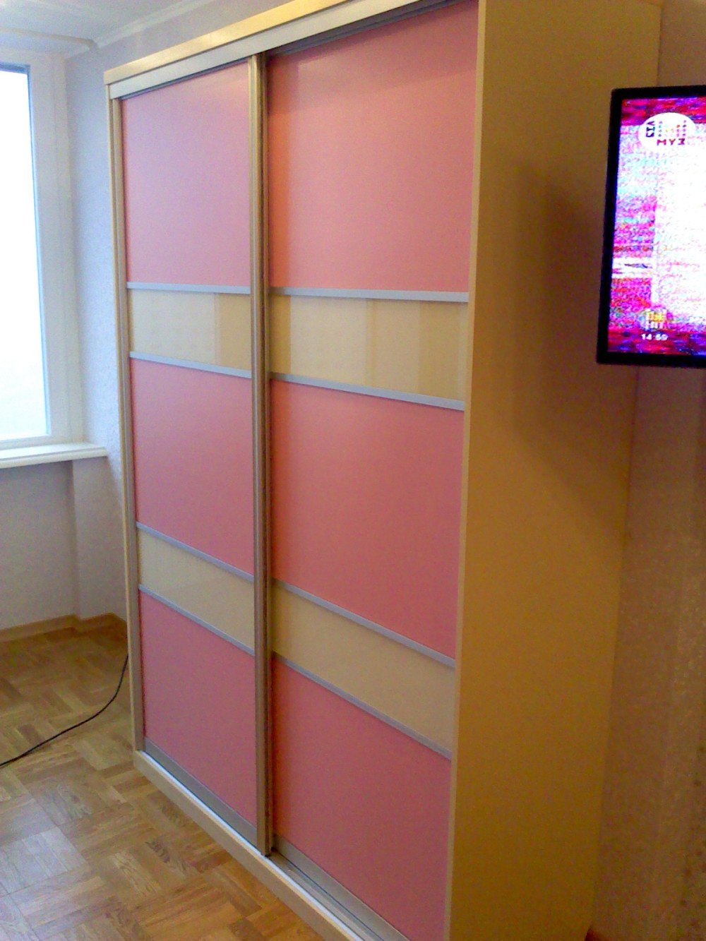 Шкаф-купе двухдверный с розовым фасадом