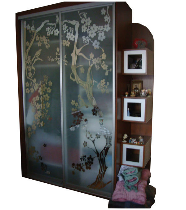 Шкаф-купе двустворчатый с узором на фасадах и боковыми полками