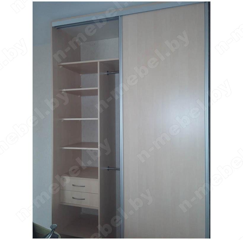 Корпусный двухдверный шкаф-купе без зеркал. Одно отделение внутри. Ширина 112 см.