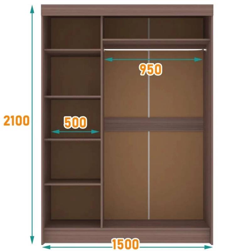 Шкаф-купе «ЭКО» 1,5 м с зеркалом (шимо темный - шимо темный)