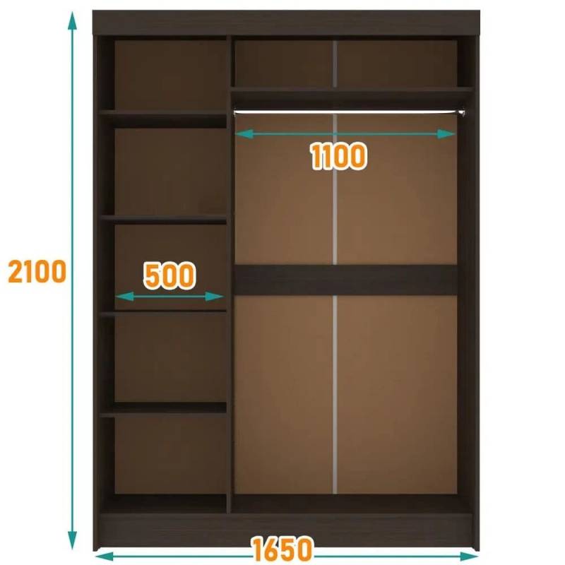 Шкаф-купе «ЭКО» 1,65 м с зеркалом (венге - дуб молочный)