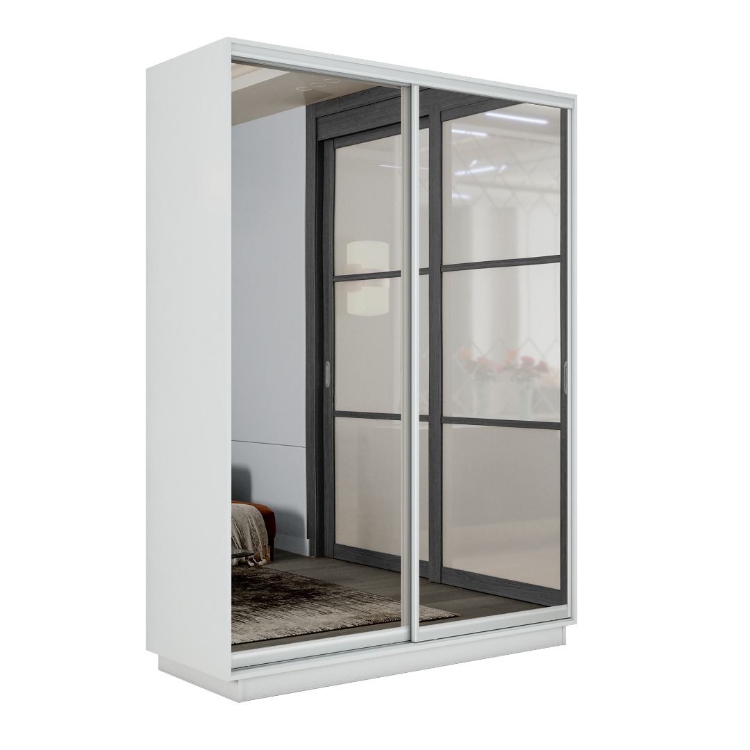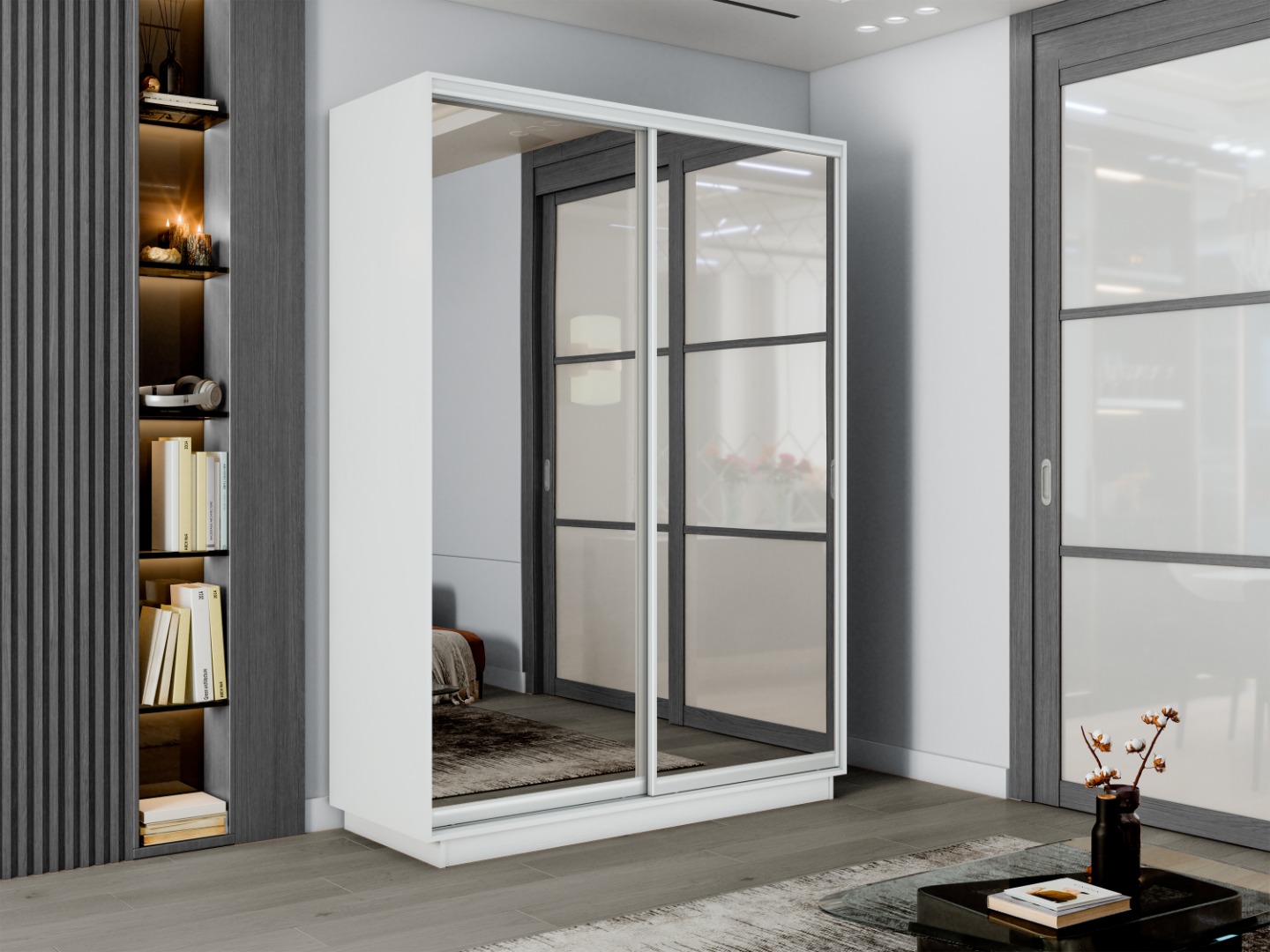 Шкаф-купе «Экспресс-2» 2-х дверный (Зеркало) - Белый снег (E1)