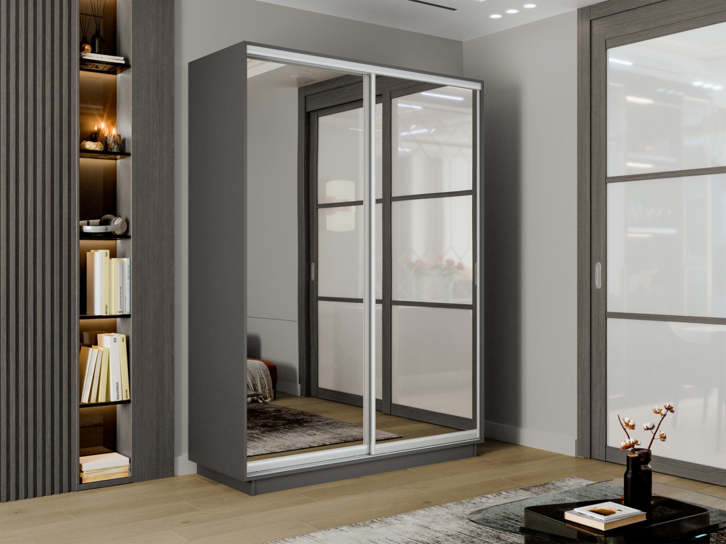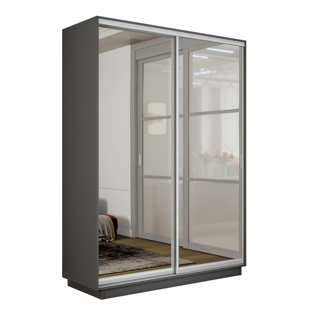 Шкаф-купе «Экспресс-2» 2-х дверный (Зеркало) - Серый Диамант (E1)
