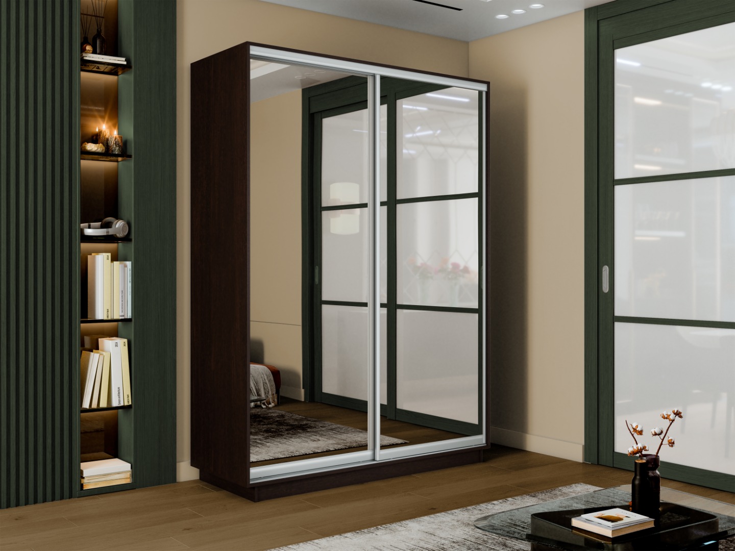 Шкаф-купе «Экспресс-2» 2-х дверный (Зеркало) - Венге (E1)