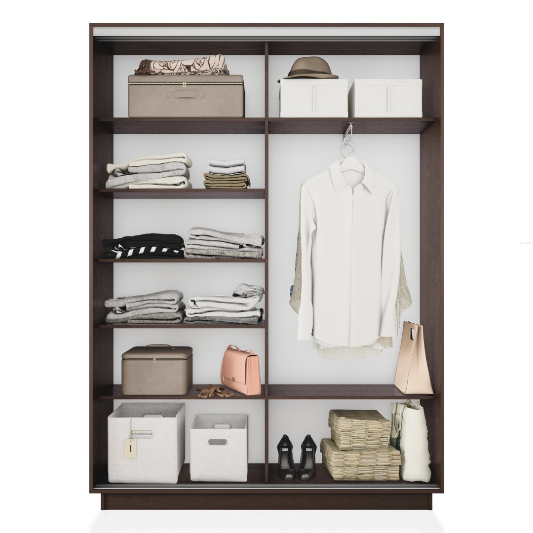 - Универсальная стоевая позволяет менять расположение штанги и полок в секциях шкафа. Любую стоевую можно поставить с левой либо правой стороны, что ускоряет процесс сборки