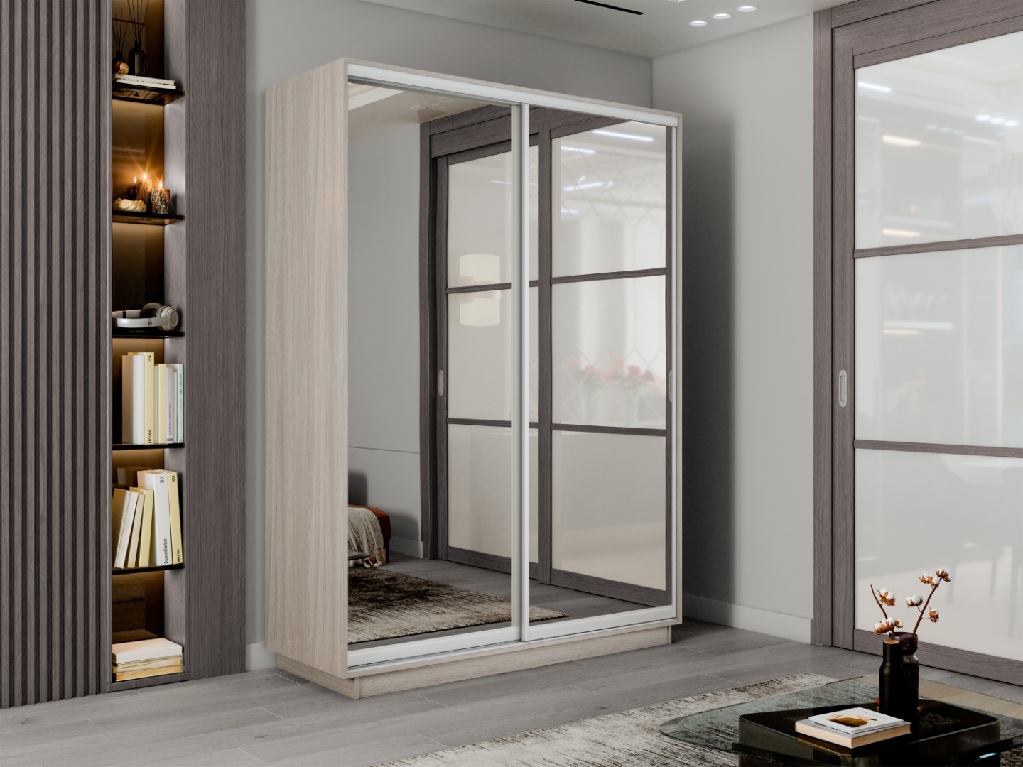 Шкаф-купе «Экспресс-2» 2-х дверный (Зеркало) - Ясень Шимо светлый (E1)