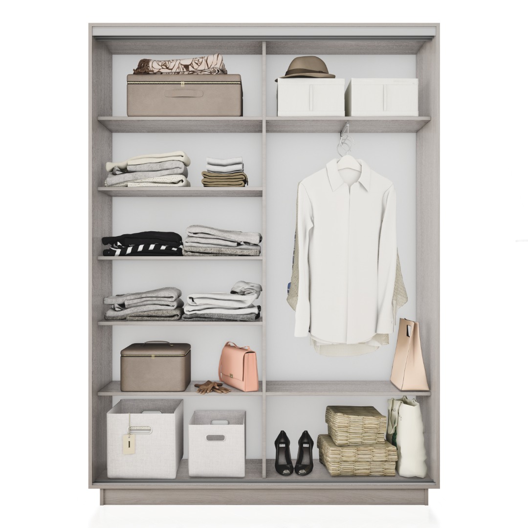 - Универсальная стоевая позволяет менять расположение штанги и полок в секциях шкафа. Любую стоевую можно поставить с левой либо правой стороны, что ускоряет процесс сборки