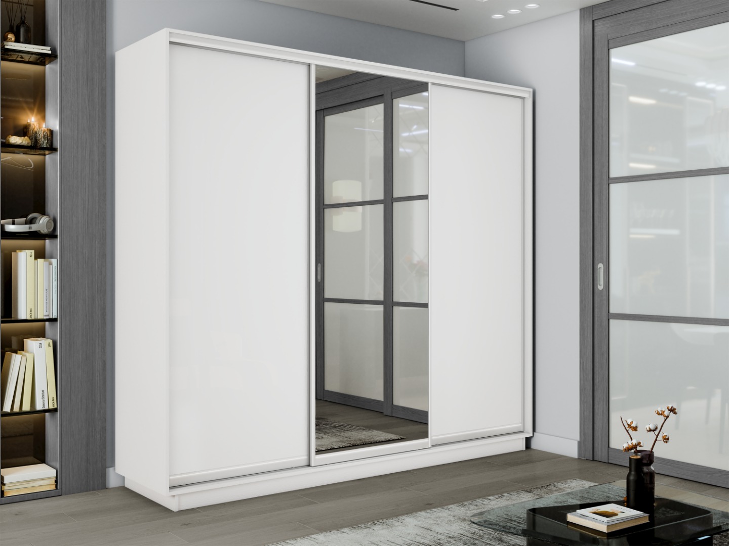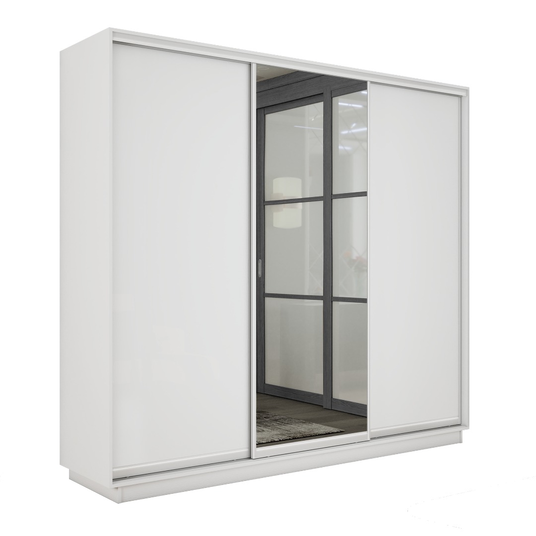 Шкаф-купе «Экспресс-2» 3-х дверный (ЛДСП/Зеркало) - Белый снег (E1)
