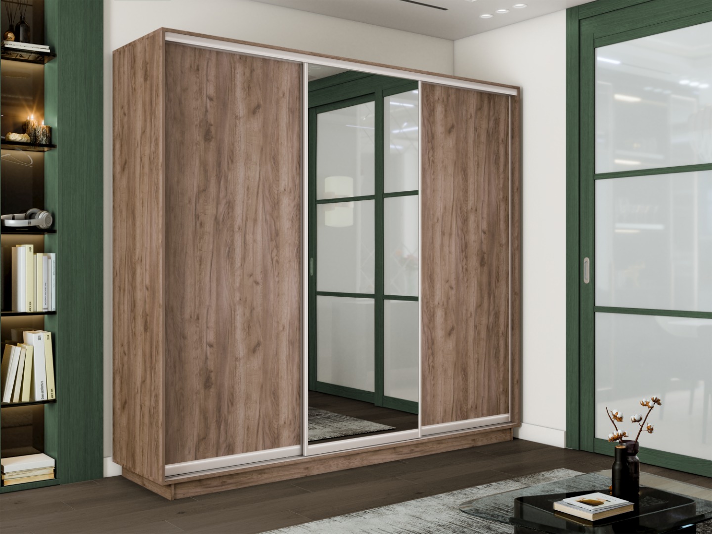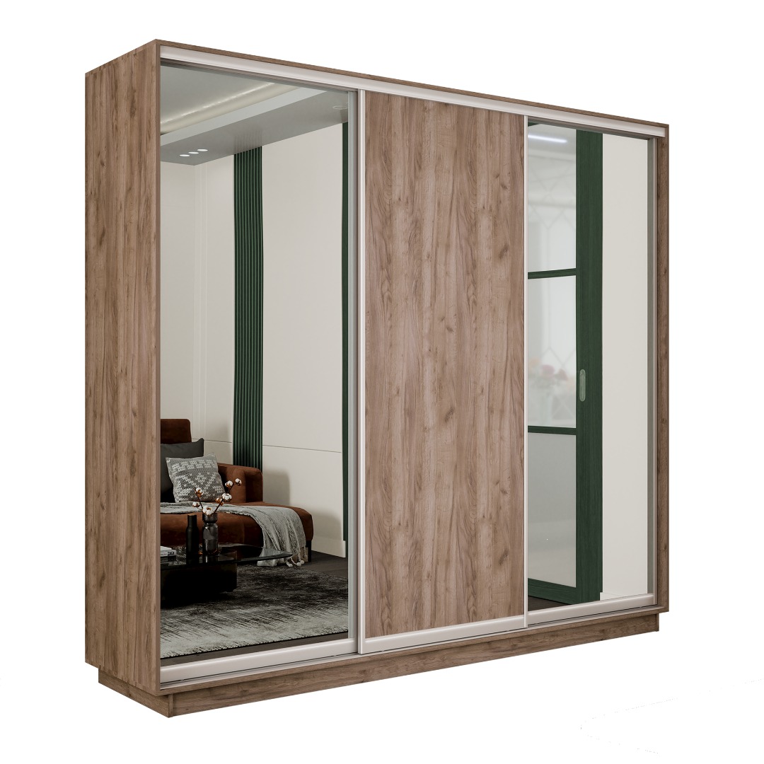 Шкаф-купе «Экспресс-2» 3-х дверный (ЛДСП/Зеркало) - Дуб Крафт табачный (E1)