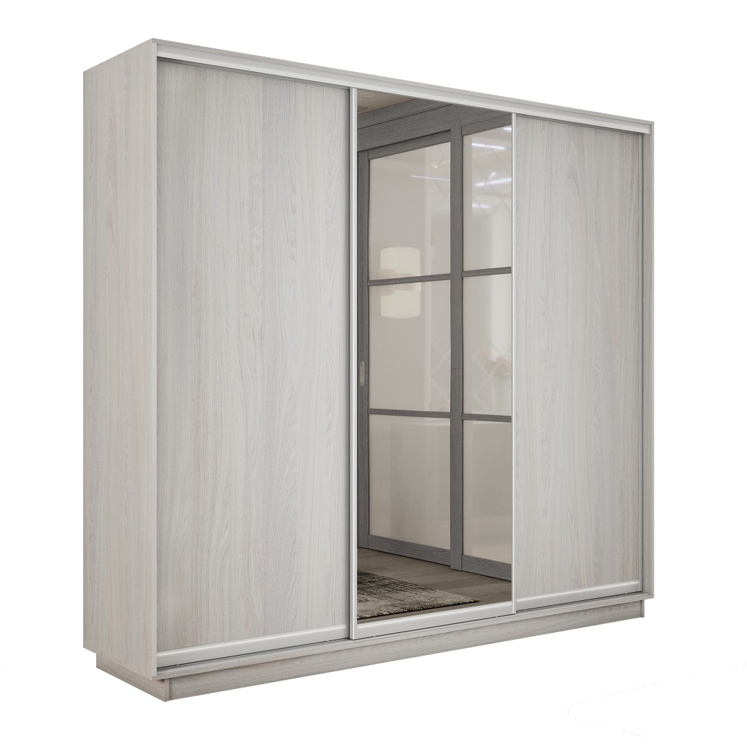 Шкаф-купе «Экспресс-2» 3-х дверный (ЛДСП/Зеркало) - Ясень Анкор светлый (E1)