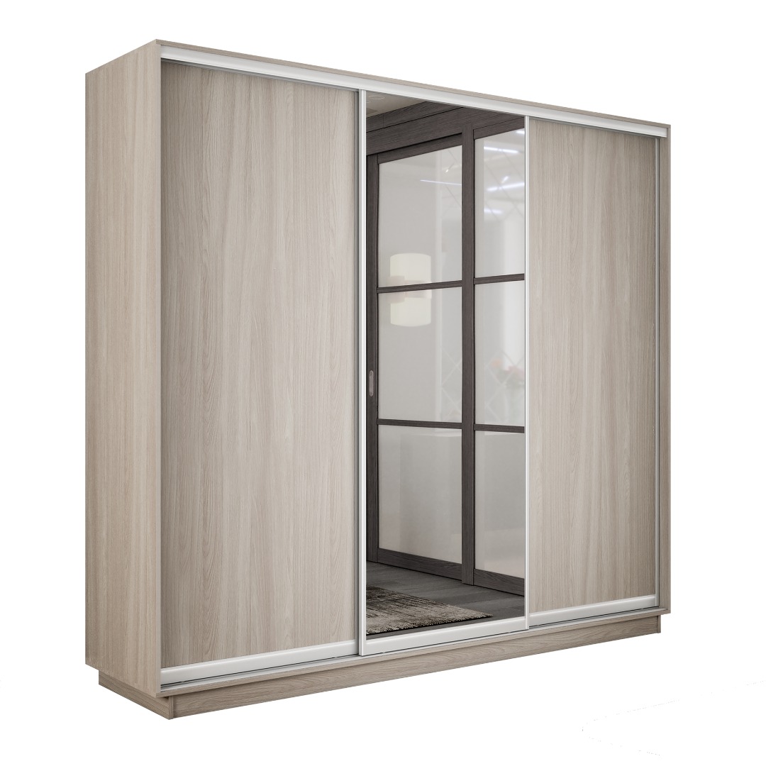 Шкаф-купе «Экспресс-2» 3-х дверный (ЛДСП/Зеркало) - Ясень Шимо светлый (E1)