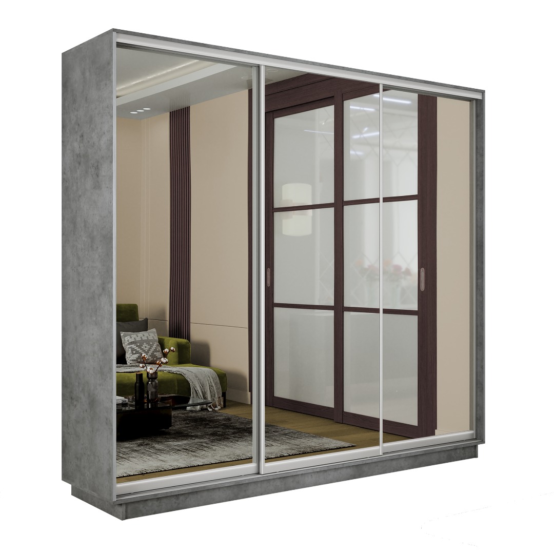 Шкаф-купе «Экспресс-2» 3-х дверный (Зеркало) - Бетон (E1)