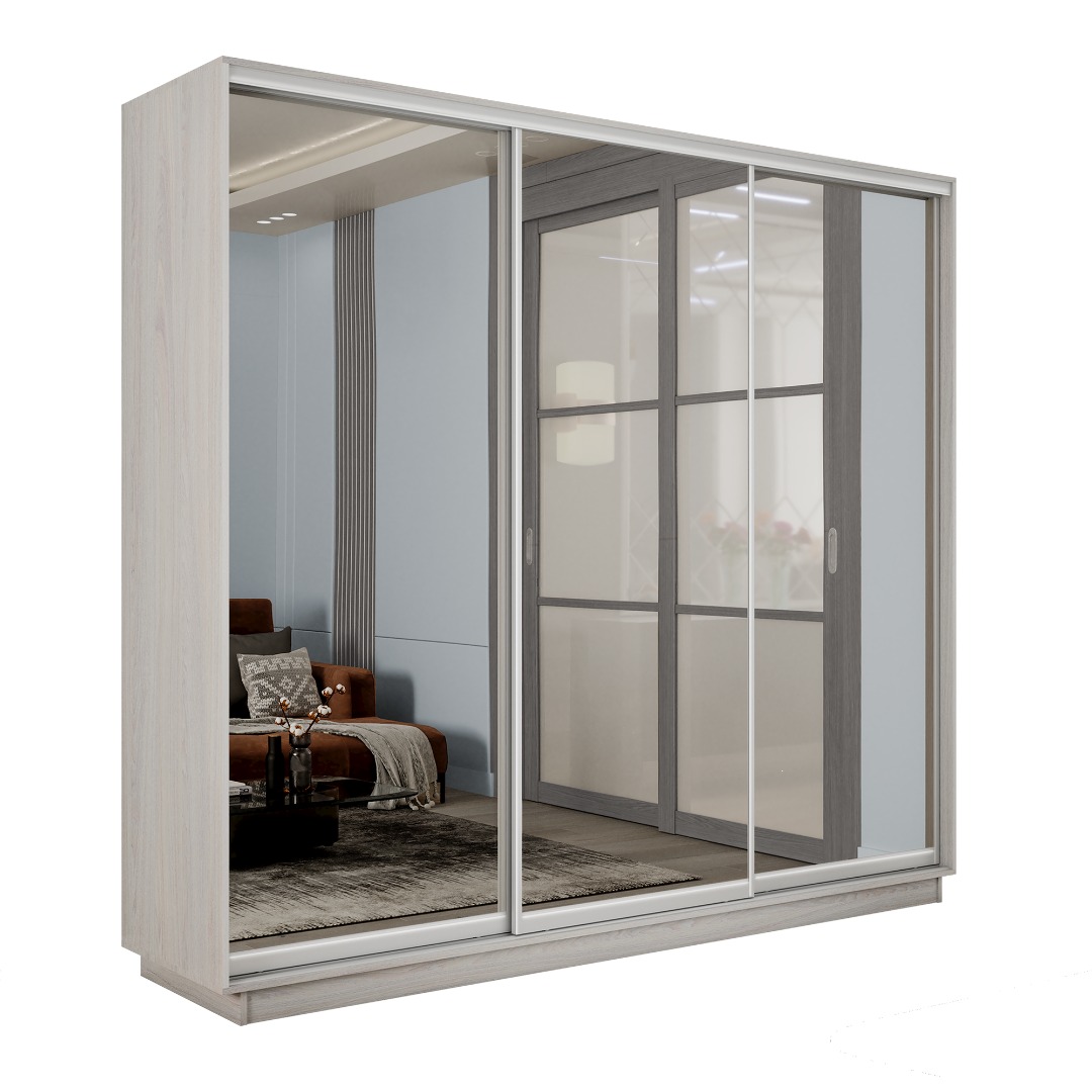 Шкаф-купе «Экспресс-2» 3-х дверный (Зеркало) - Ясень Анкор светлый (E1)