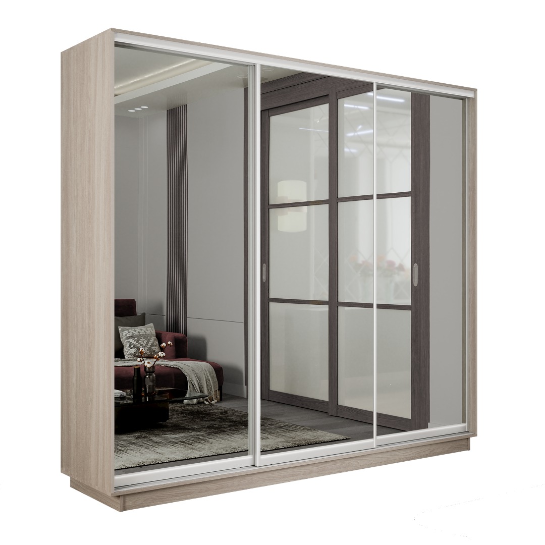 Шкаф-купе «Экспресс-2» 3-х дверный (Зеркало) - Ясень Анкор светлый (E1)