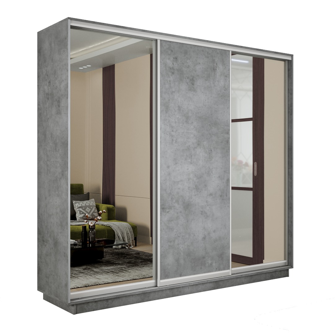 Шкаф-купе «Экспресс-2» 3-х дверный (Зеркало/ЛДСП) - Бетон (E1)