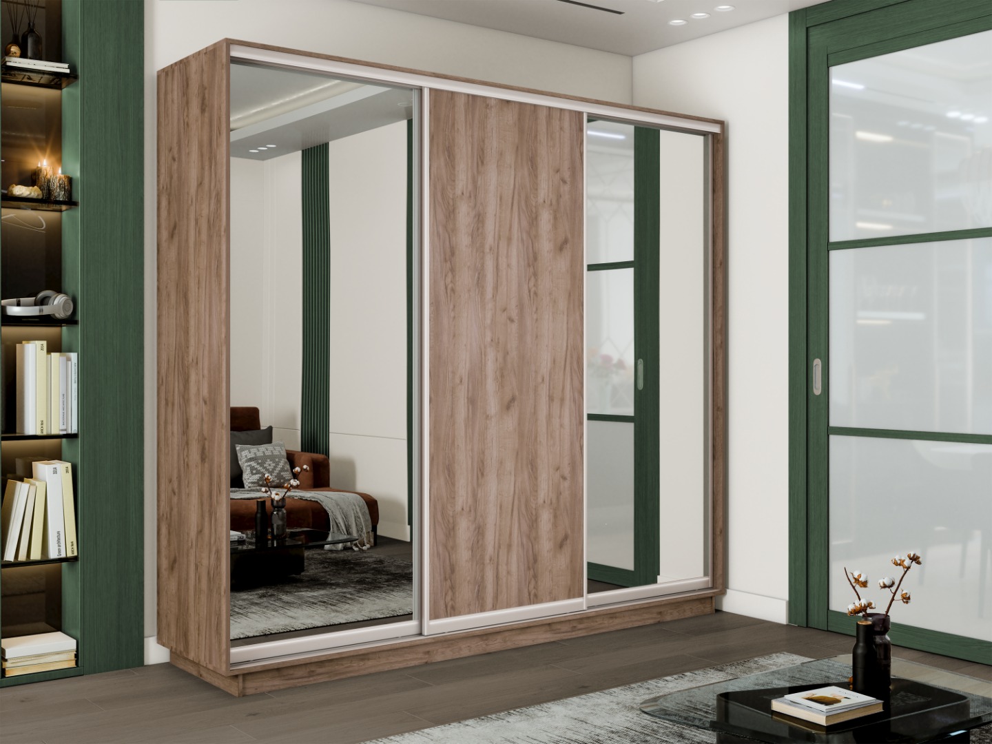 Шкаф-купе «Экспресс-2» 3-х дверный (Зеркало/ЛДСП) - Дуб Крафт табачный (E1)