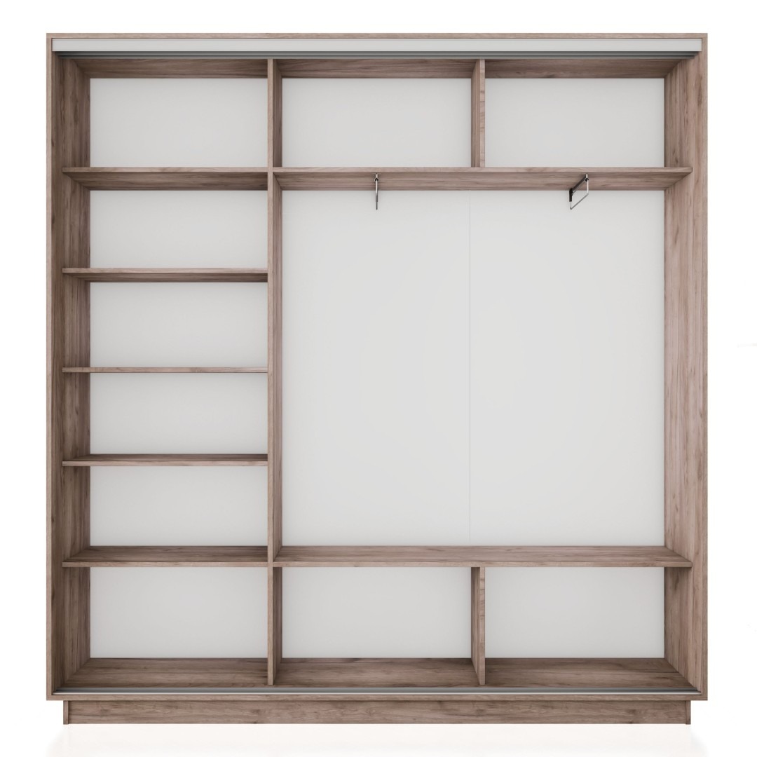 - Универсальная стоевая позволяет менять расположение штанги и полок в секциях шкафа. Любую стоевую можно поставить с левой либо правой стороны, что ускоряет процесс сборки