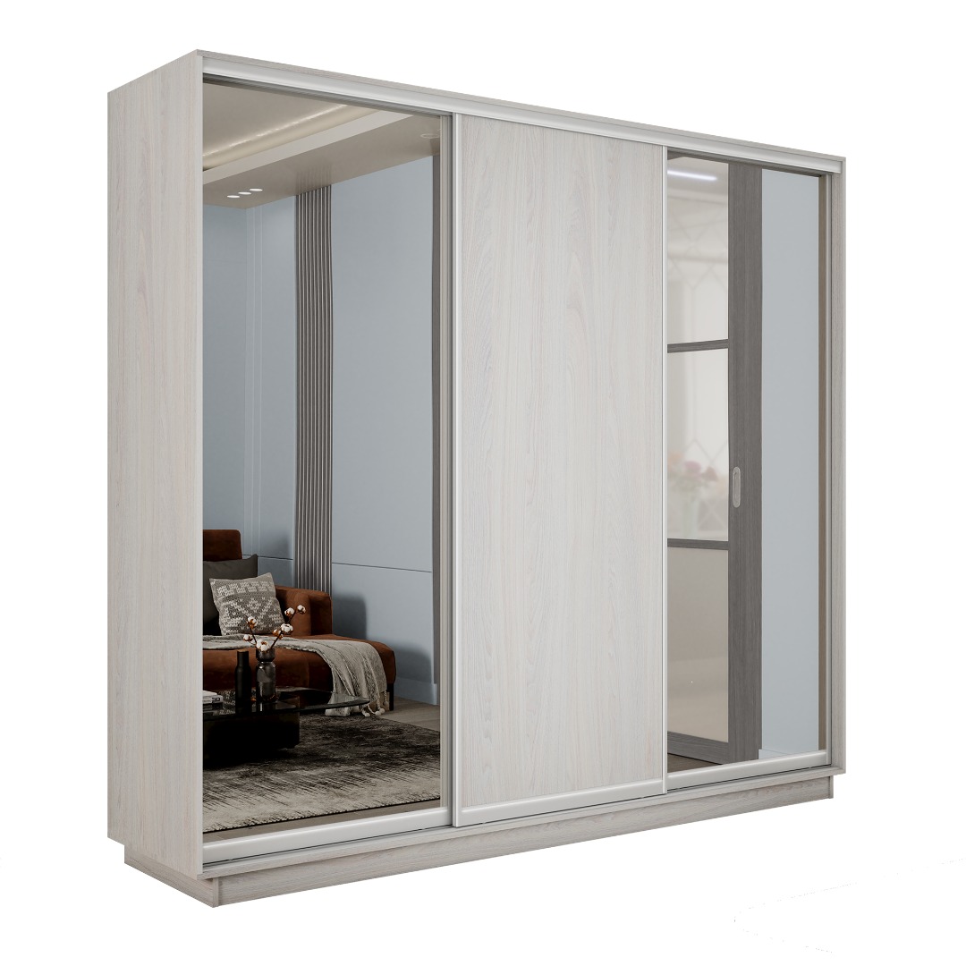 Шкаф-купе «Экспресс-2» 3-х дверный (Зеркало/ЛДСП) - Ясень Анкор светлый (E1)