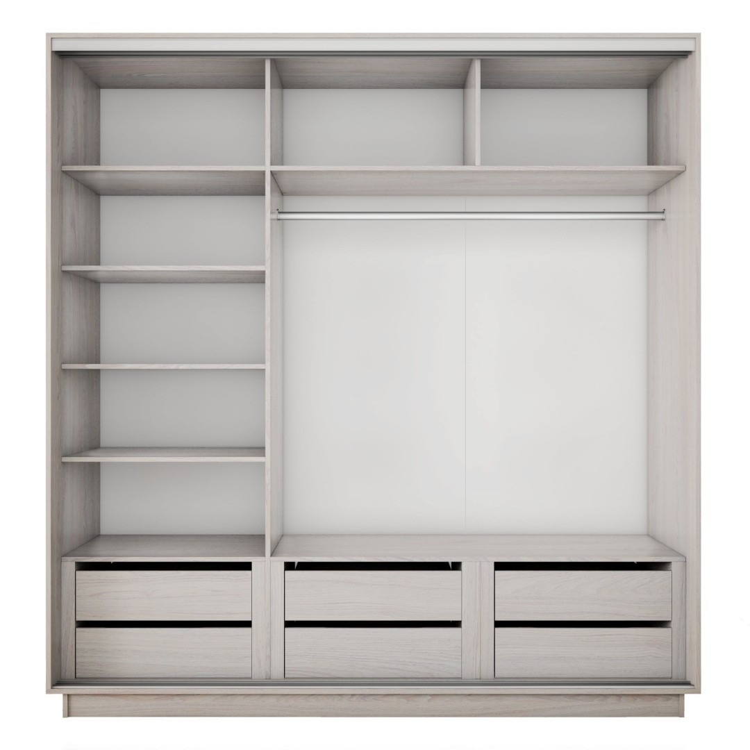 - Универсальная стоевая позволяет менять расположение штанги и полок в секциях шкафа. Любую стоевую можно поставить с левой либо правой стороны, что ускоряет процесс сборки
