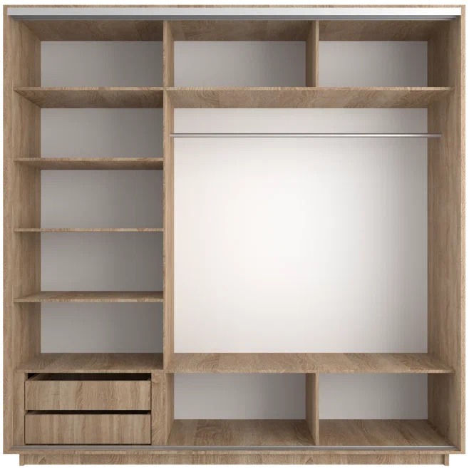 Базовая комплектация шкафа-купе Экспресс - 5 полок и 1 штанга. К данной модели Вы можете дополнительно приобрести внутренний модуль с выдвижными ящиками и угловой стеллаж. Шкаф-купе может комплектоваться только одним модулем с выдвижными ящиками в нижней левой нише шкафа-купе. Дополнительные модули находятся в разделе "С этим товаром часто заказывают".