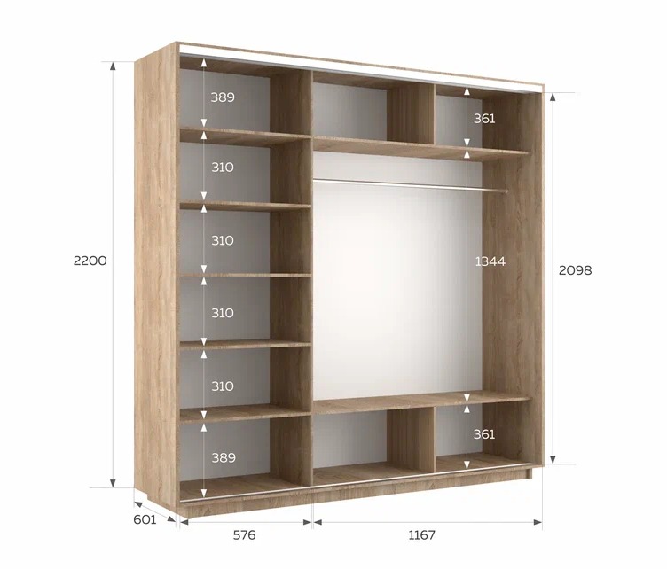 Шкаф-купе «Экспресс» 3 зеркала 1800х2200х600 сонома