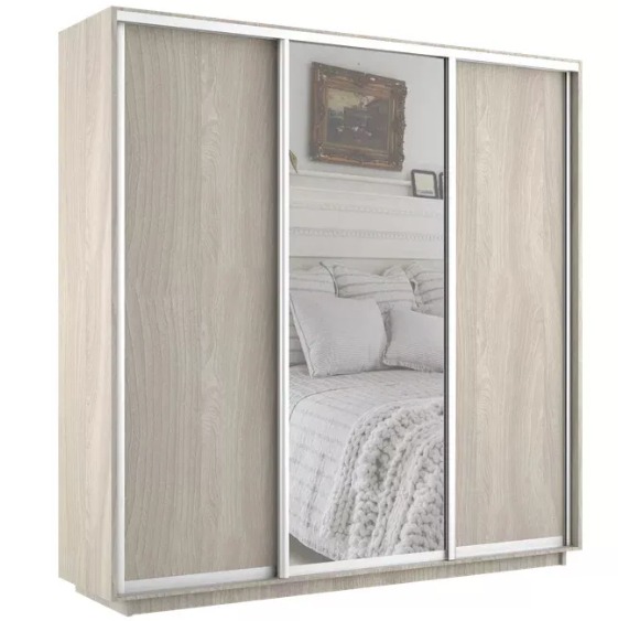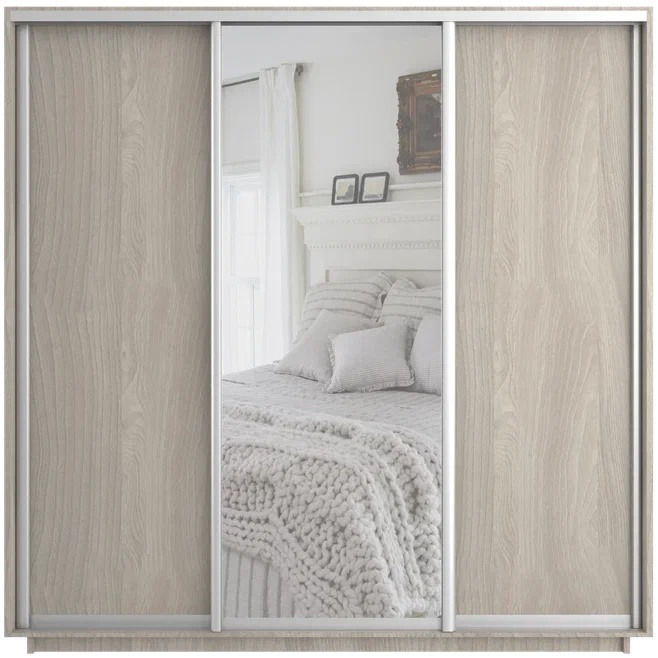 Шкаф-купе «Экспресс» ДСП/Зеркало/ДСП 2100х2400х600 ясень шимо светлый