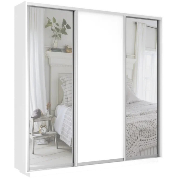 Шкаф-купе «Экспресс Комби» Зеркало/ДСП/Зеркало 1800х2200х450 белый снег